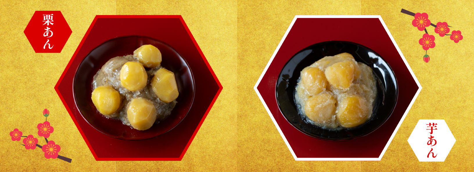 芋あん・栗あん二つの栗きんとんの食べ比べ